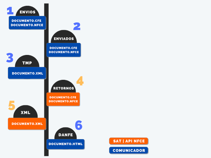 A emissão de NFe e NFSe são processadas de forma assíncrona. NFCe é processada de forma síncrona.